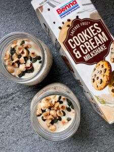 - Benna Cookies and Cream Milkshake (as needed to cover oats and chia seeds)